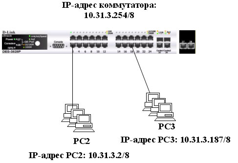 Задача: PC2 имеет доступ к PC3, но PC2 не имеет доступа к коммутатору. PC3 имеет доступ и к PC2 и к коммутатору.