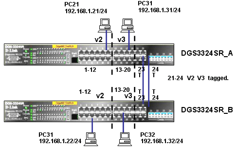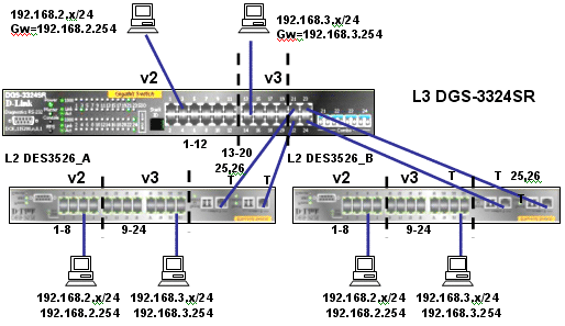 Конфигурация DES-3526_A и DES-3526_B L2: